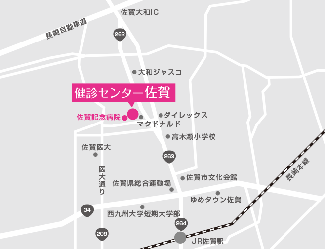 アクセス(交通のご案内) ,ab0d4bfa-4a94-4cd5-b1b7-efe02dac73d5,,{"tempId":"gdefault","gmapWidth":"100","gmapWidthUnit":"%","gmapHeight":"450","gmapHeightUnit":"px","gmapZoomLevel":15,"gmapScrollWheel":true} 駐車場のごあんない 駐車台数/50台■ 駐車可能時間 ◎月~金/8:00~18:00 ◎土/8:00~13:30受診者の方は、敷地内の駐車場を無料でご利用いただけます。 交通アクセス ■佐賀大和インターより車で5分■佐賀駅より車で10分■県庁前(旧佐賀商工会館ビル)・佐賀駅バスセンターから病院まで市営バスが乗り入れしています(路線番号36番) 医療法人社団敬愛会 健診センター佐賀 〒849-0917 佐賀県佐賀市高木瀬町大字長瀬1167番地2 TEL0952-20-5511 FAX 0952-20-5522